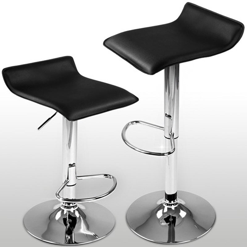 2 x Contemporary PU Leather Kitchen Bar Stools (BLACK -Set of 2)
