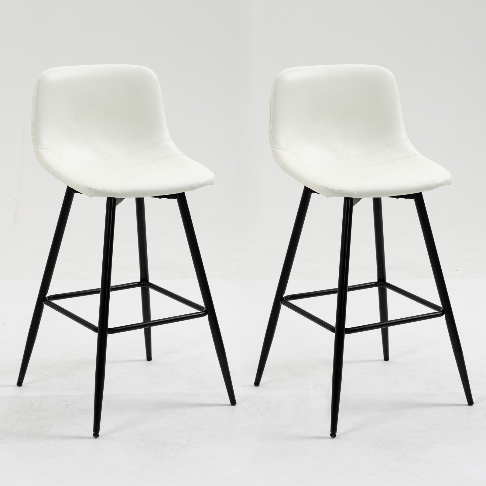 Transform your seating experience with this Set of 2 Modern Faux Leather Upholstered Bar Stools. Showcasing a stunning and timeless design paired with unparalleled comfort, these stools are the epitome of contemporary elegance. Seamlessly integrate these versatile seating options into your home bar, kitchen island, or entertainment area to create an inviting and luxurious atmosphere.