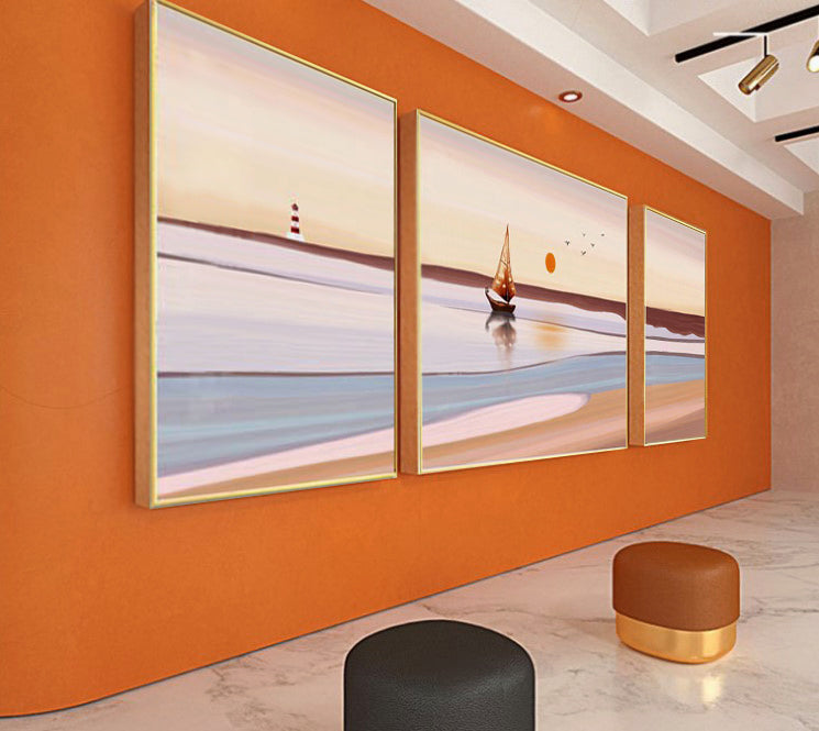 The beautiful beach-inspired scenes exude positive energy and relaxation, transforming your space into a haven of peace and elegance. The impeccable craftsmanship and attention to detail in these paintings will undoubtedly enhance your interiors and elevate your overall decor.