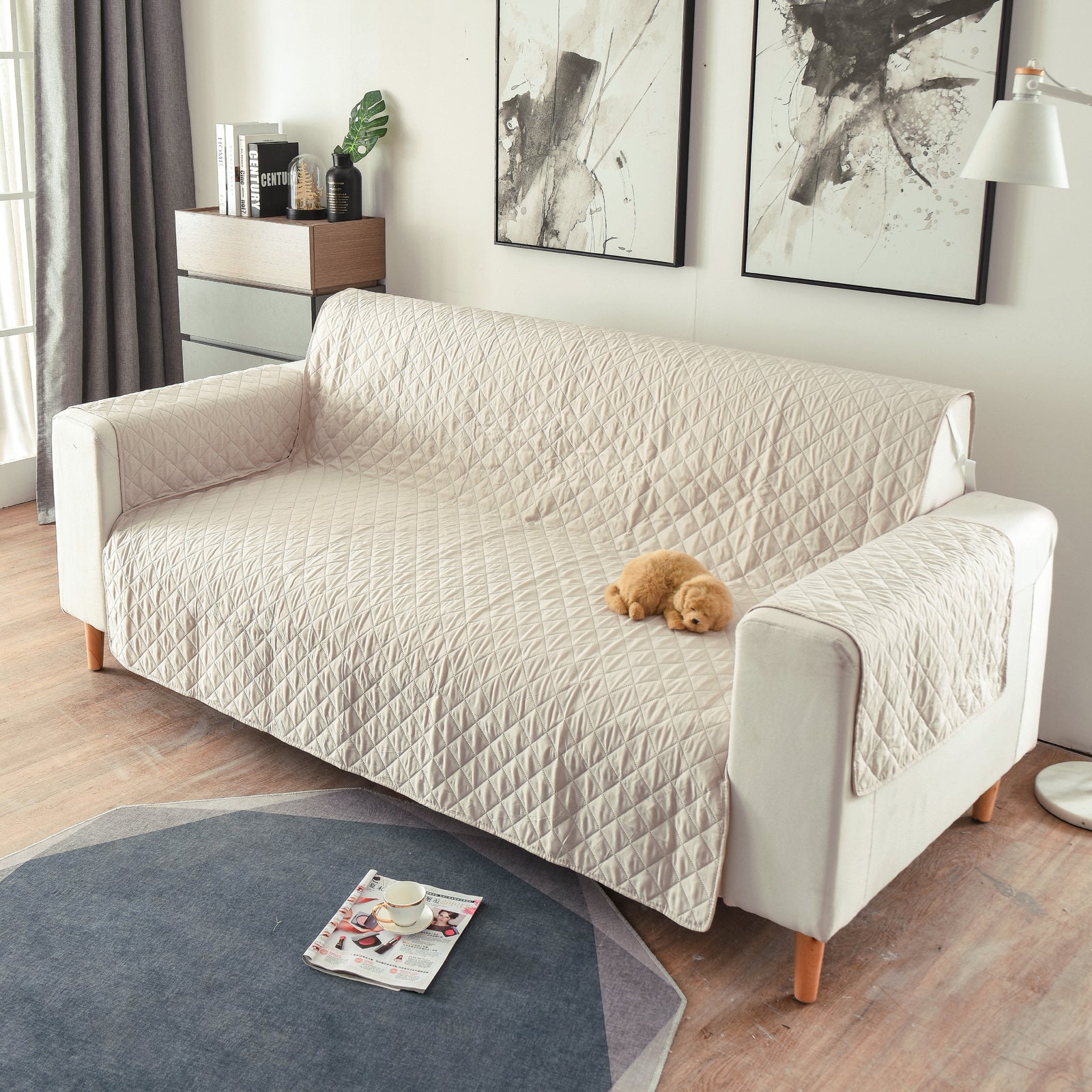 Preserve your couch's immaculate appearance for years by shielding it from spills, scratches, and pet hair with the sophisticated and luxurious microfiber quilted sofa cover. This plush, thick, water-resistant cover boasts detailed quilting and is fashioned from low-maintenance fabric, guaranteeing effortless upkeep. Protect your sofa from the perils of children and pets while adding a touch of style and comfort.t.
