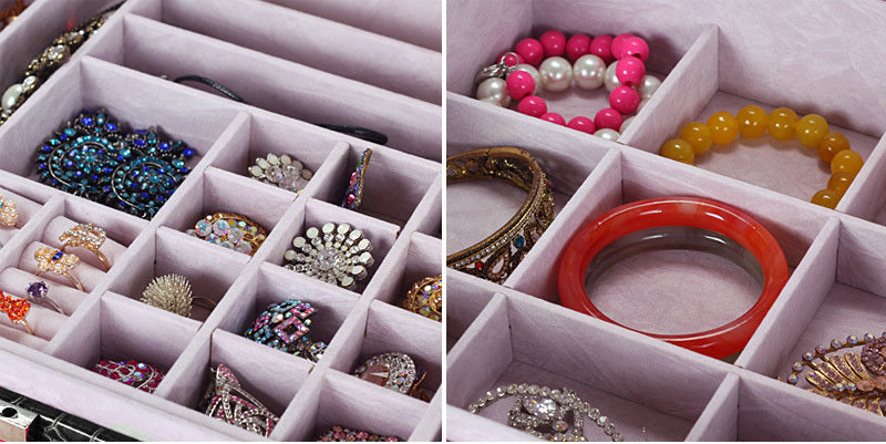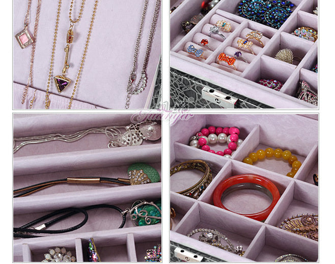 This Deluxe crocodile leather look jewellery organizer is absolutely beautiful in design and function. You will be thrilled by its exquisite and luxurystyle. This elegantly finished jewellery box features multiple layers and various compartments, ring rolls and necklace hangers. Keep all your valuables organized and protected, in style. You'll proudly display this deluxe luxury organizer anywhere in the house as a gorgeous decoration. Its open design with spacious shelves offers endless storage possibilities. This is an awesome gift to keep and to give and will be cherished for years to come.