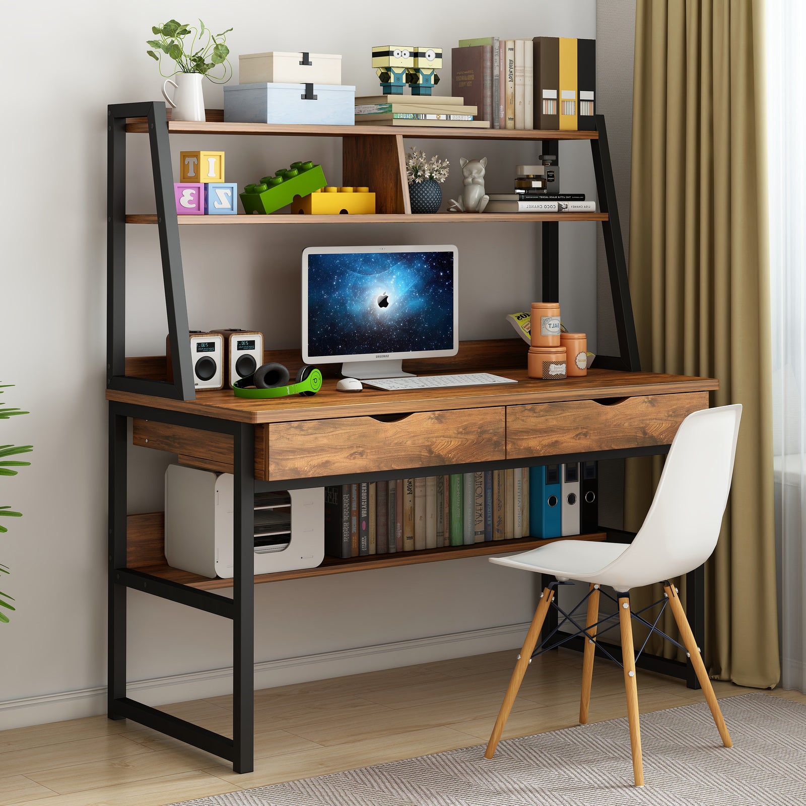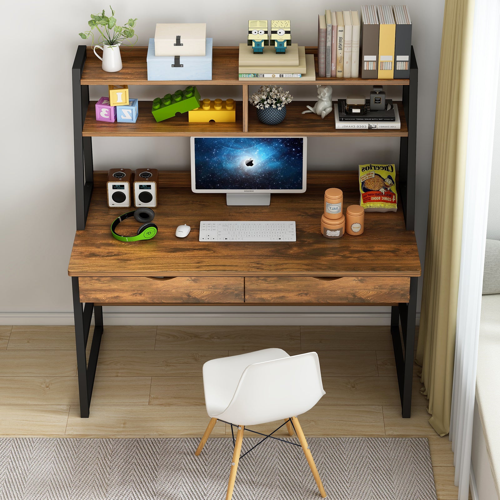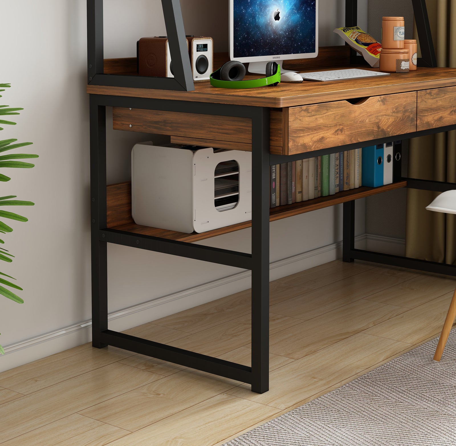The ultra-sleek, stylish, and streamlined design of this desk adds a touch of modernity juxtaposed with hints of timeless charm. Its spacious drawers and multiple shelves not only provide ample storage space for all your office essentials, allowing you to declutter and organize. You'll have enough room to store books, folders, documents, and stereo systems and display your favourite ornaments, making it both functional and visually appealing. The desk's versatility enables you to use your space effectively, in comfort and style. The ample table space for your computer and accessories allows you to work efficiently.