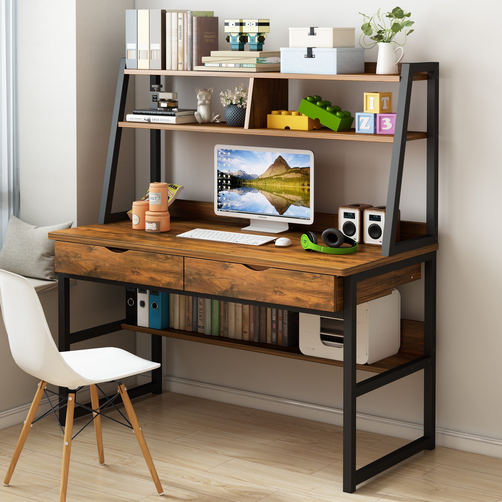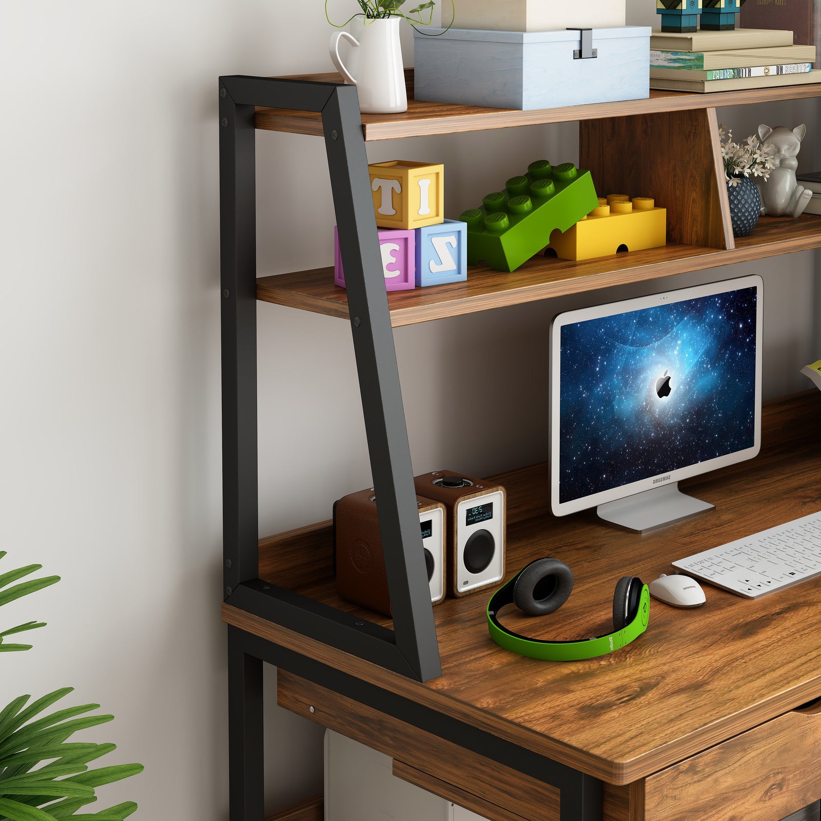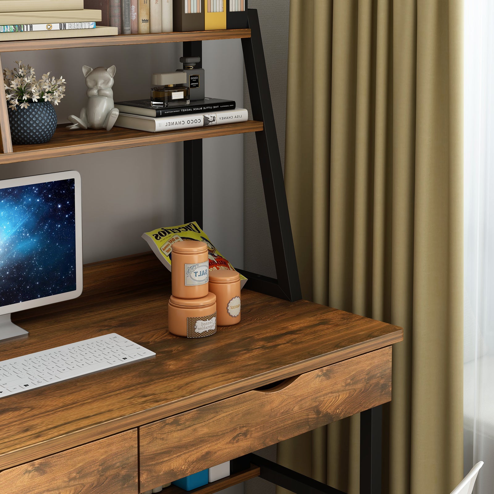 Enterprise Large Computer Desk Workstation with Shelves & Drawers (Rustic Wood)