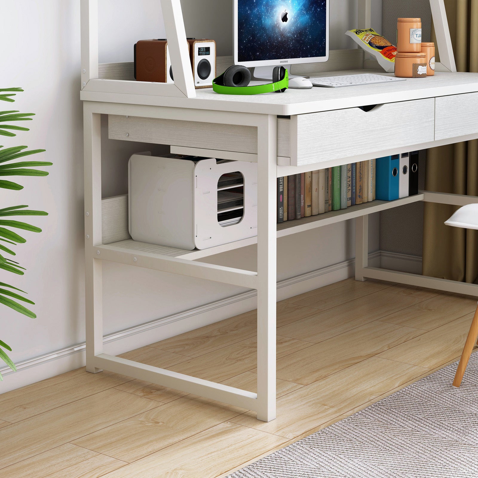 Enterprise Large Computer Desk Workstation with Shelves & Drawers (White)