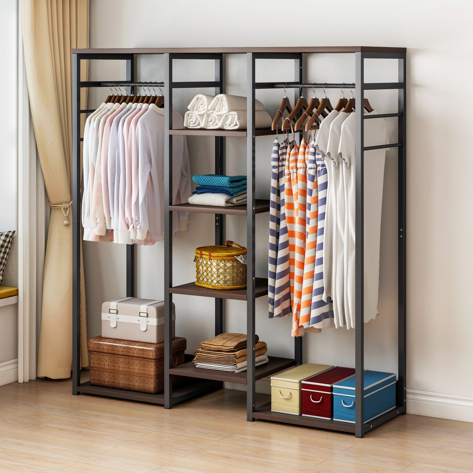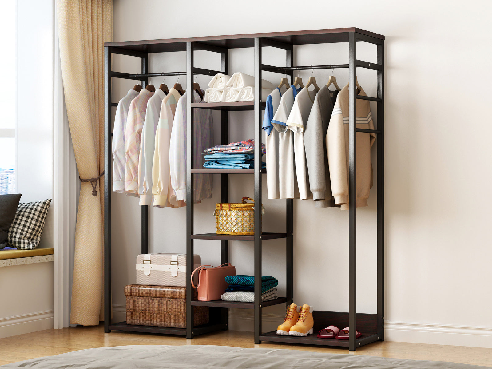 Galaxy Wardrobe Cupboard Shelves & Clothes Hanging Racks (Black Walnut)