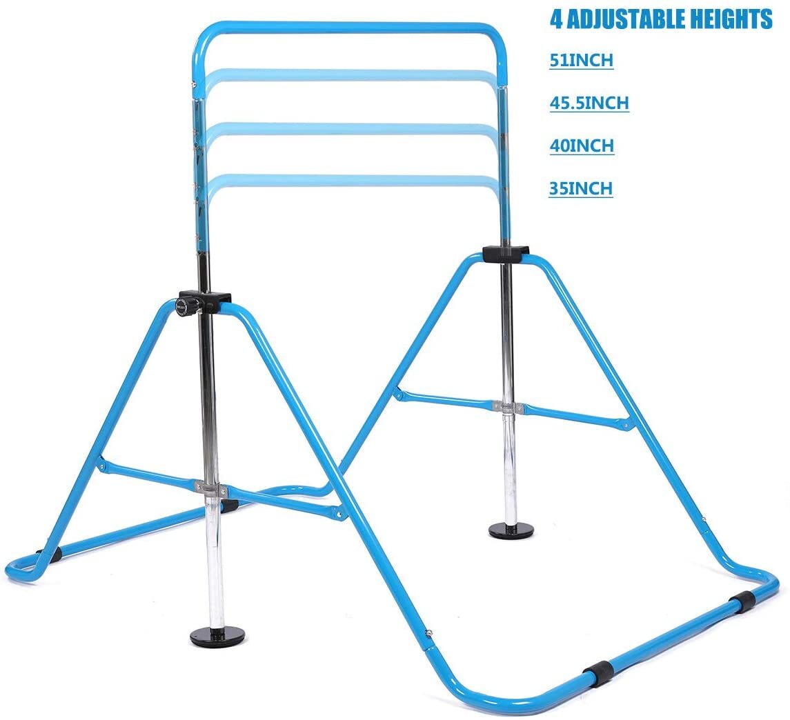 4 Adjustable Heights - The gym bar has 4 height levels to adjust, from 34'' (88cm) to 51''(130cm). It can fit your child's size as they grow and meet different needs and skill levels for home.