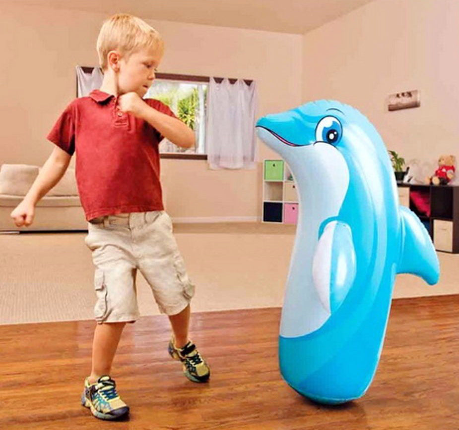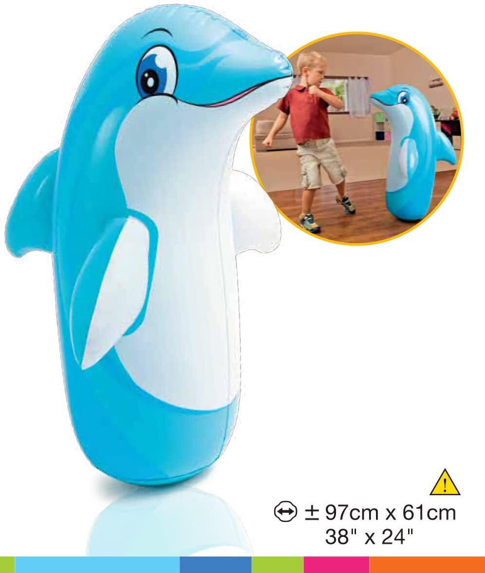 Punch and watch it rebound for some more punches. This amazing inflatable 3D bop bag boxing punch bag by Intex is perfect for your active kid. It is a cute Dolphin character and your little one will love spending hours boxing it.