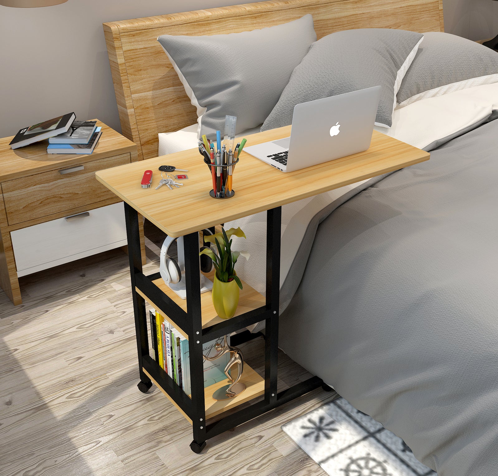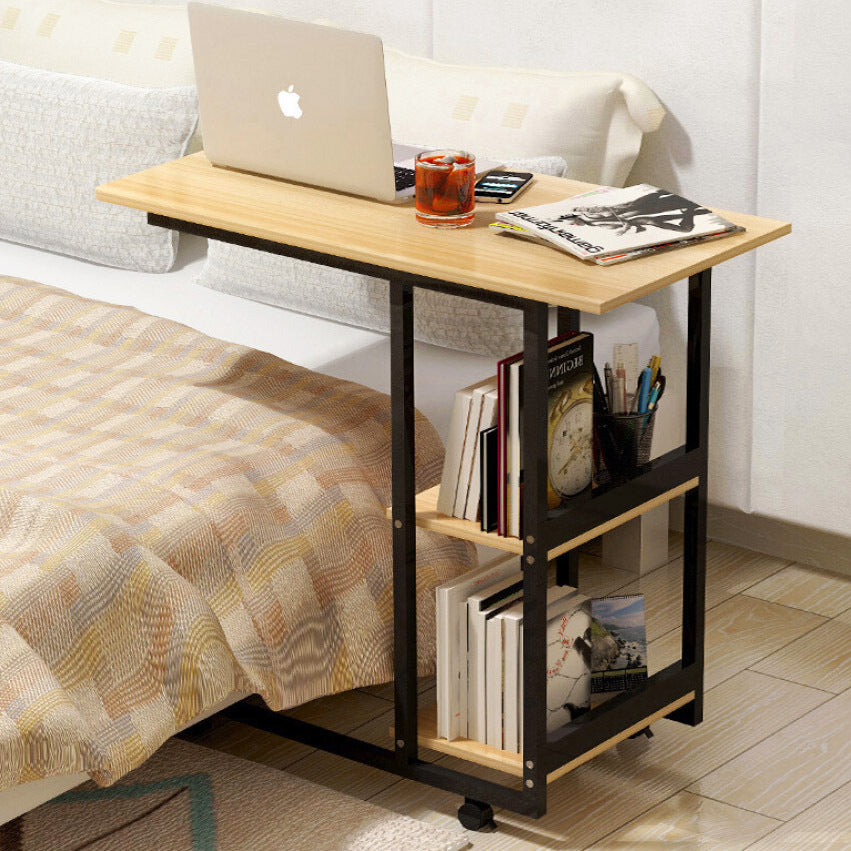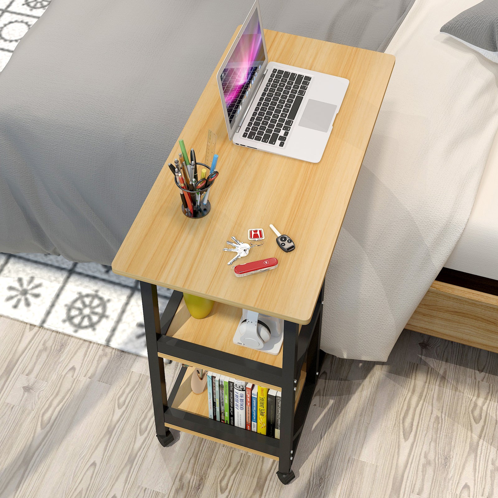 Large Supreme Sofa Bed Side Table Laptop Desk with Shelves & Wheels (Oak)