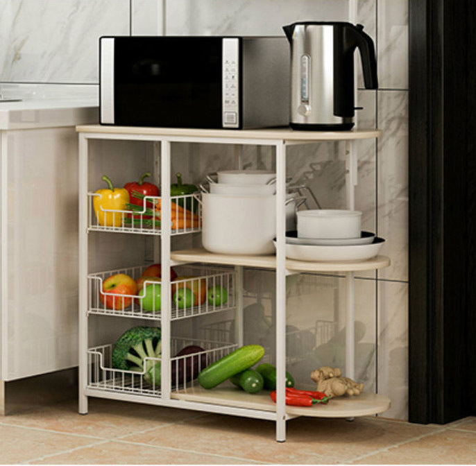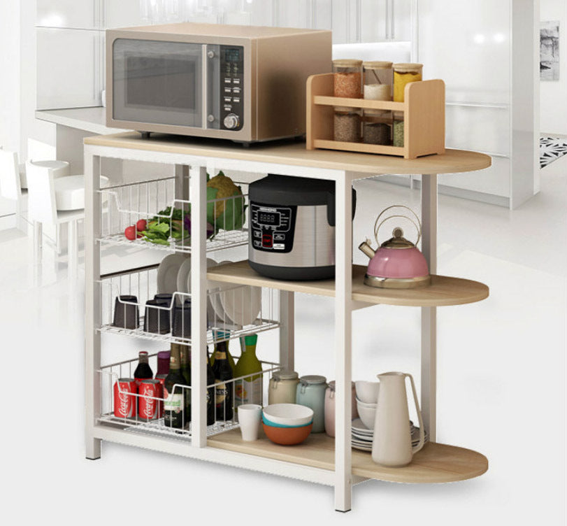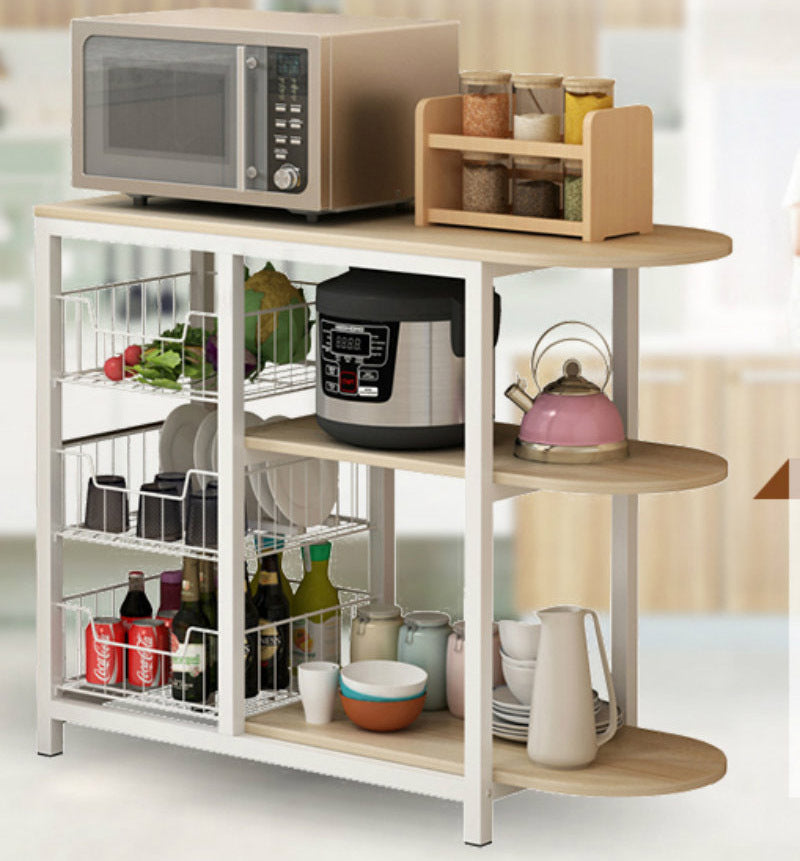 A space saver, an organizer, a kitchen bench, this stylish kitchen Workbench Shelf is the perfect match for your dream kitchen. Beautifully designed to maximize space and add functionality. it provides an ideal storage solution and will bring immediate style to your kitchen without renovating. It offers a stylish and smart way to add storage and organization to your kitchen. Featuring stable and sturdy steel frame, perfectly styled spacious shelving with enough space for microwave, coffee machine, and more, and beautifully designed spacious benchtop that is solid and generous which makes preparation in the kitchen easy, it is functional, smart, space-saving and suitable for your purposes. A striking combination combines the sophistication of steel and the warmth of wood, sleek, elegant and so versatile.