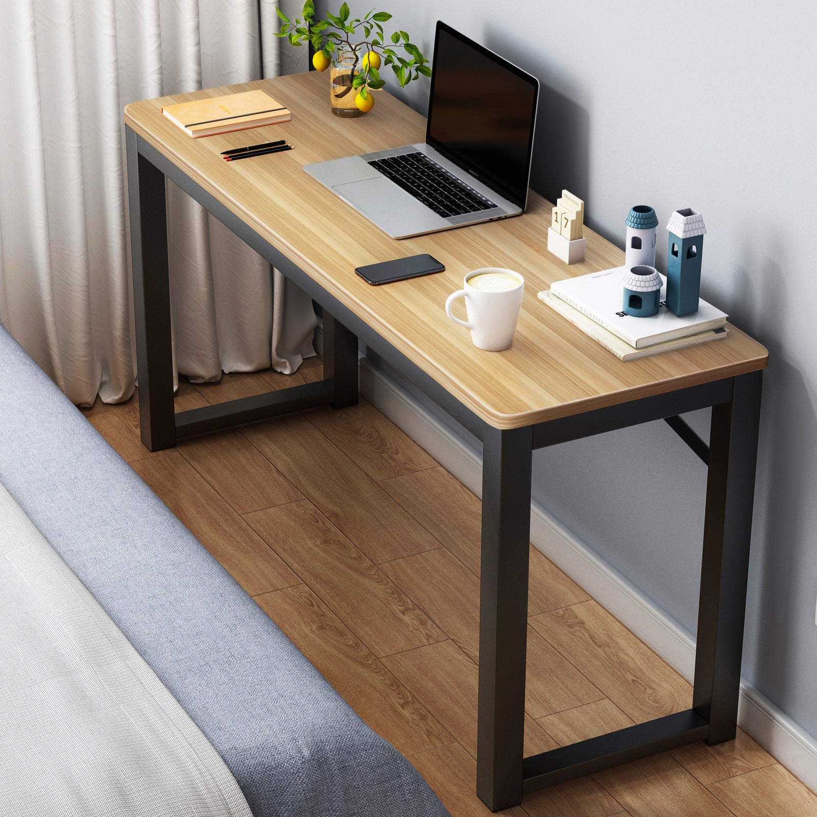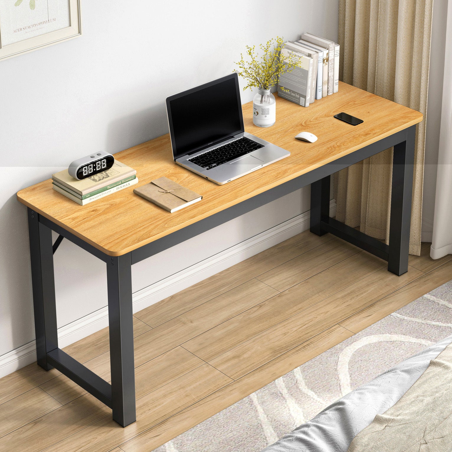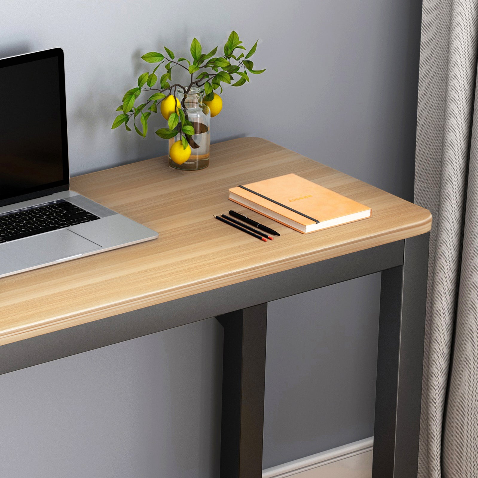 Perfectly sized to fit into a variety of spaces, this wood and metal console table greets guests with refined grace in your entryway, showcases family memories in your living room, or becomes a streamlined and efficient workspace to meet your productivity needs. Its minimalist design, featuring contemporary lines and rounded edges for added safety, harmonizes with any decor and elevates your space with a modern touch.