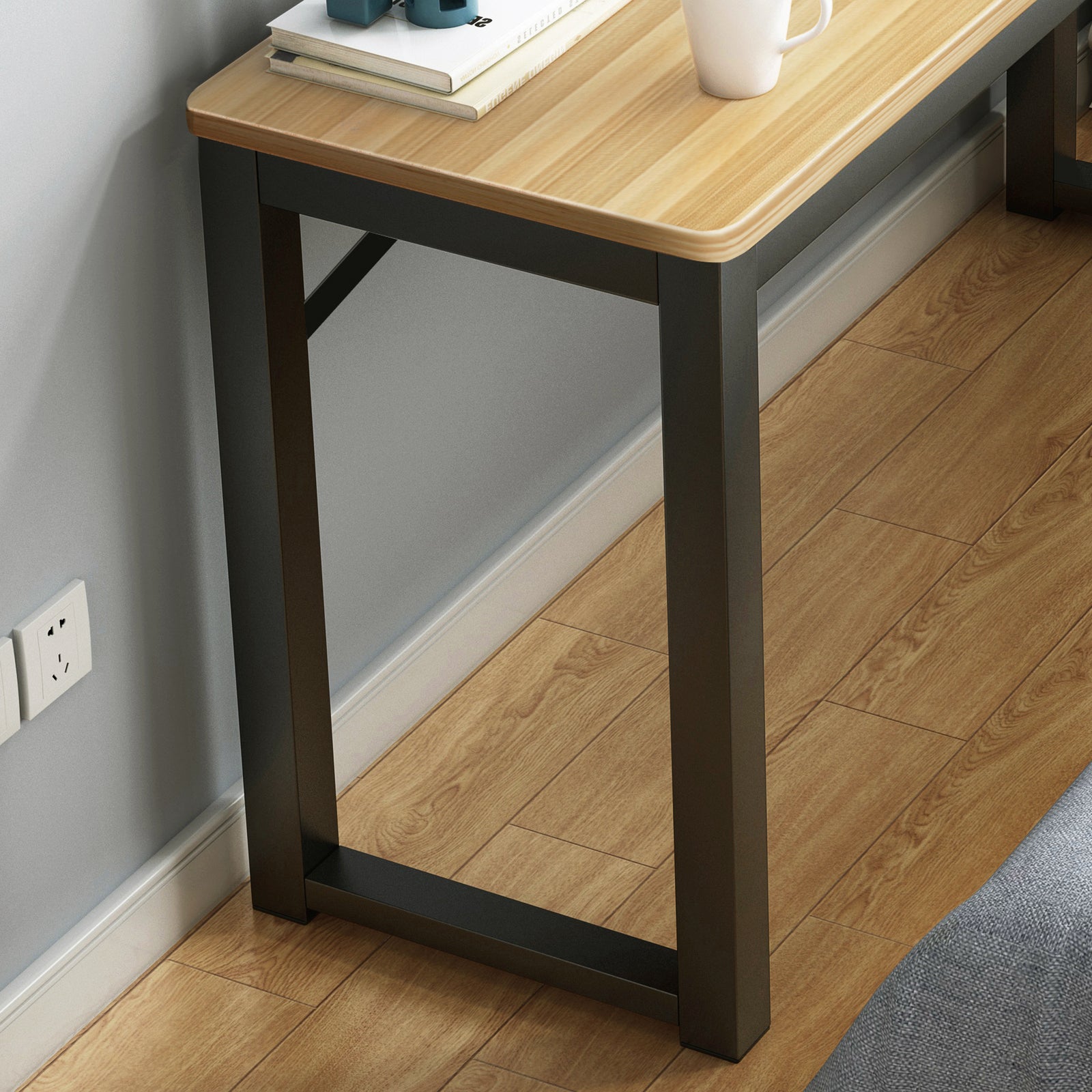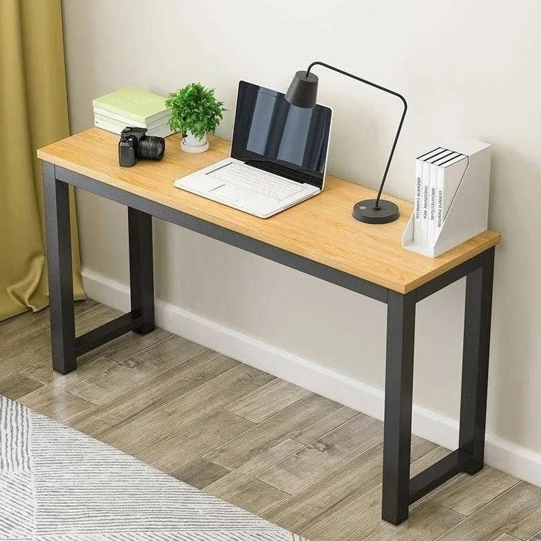 Profile Console Table Wood & Metal Narrow Desk (Oak & Black)