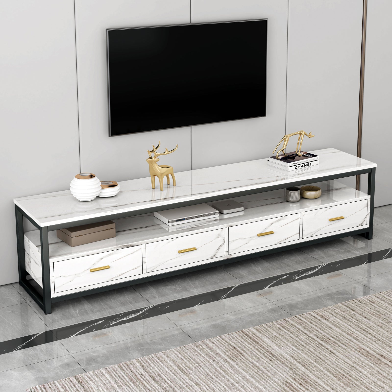 Anchor your entertainment space in elegant yet refined style with the Synergy Marble look TV stand. Crafted of quality MDF wood with a sturdy steel finish, this handsome design adds elegant charm and brings a luxurious atmosphere.